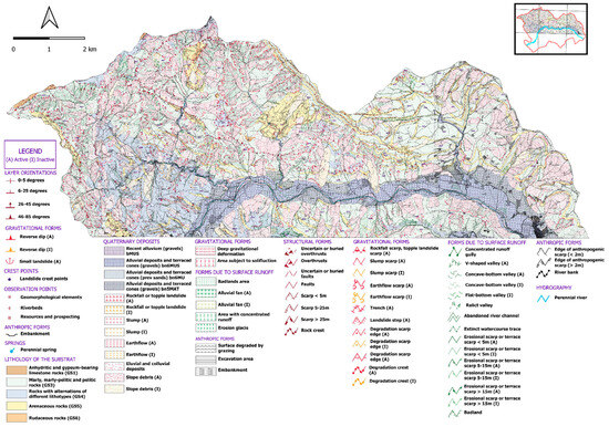 Geomorphological map of the study area. Data from the Marche Region cartography at 1:10,000 scale. Reprinted with permission from Ref. [51].