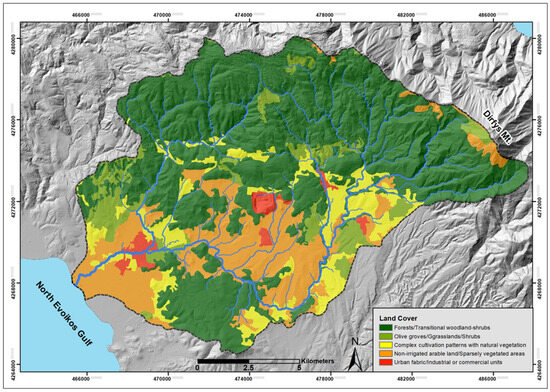 - Valkanou, K.; Karymbalis, E.; Bathrellos, G.; Skilodimou, H.; Tsanakas, K.; Papanastassiou, D.; Gaki-Papanastassiou, K. Soil loss potential assessment for natural and post-fire conditions in Evia Island, Greece. Geosciences 2022, 12, 367. [Google Scholar] [CrossRef]