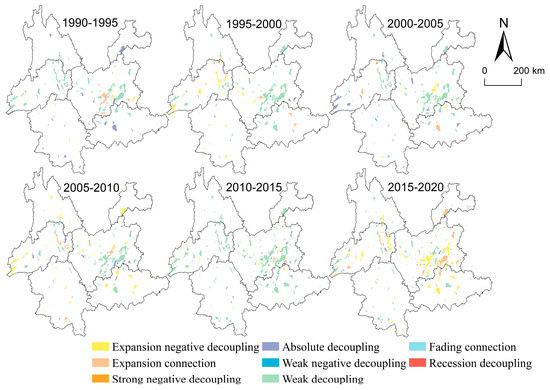 1990–1995: During this period, many basins lacked sufficient construction land, while those that did experienced rapid expansion. Weak decoupling was the dominant state during this time.
