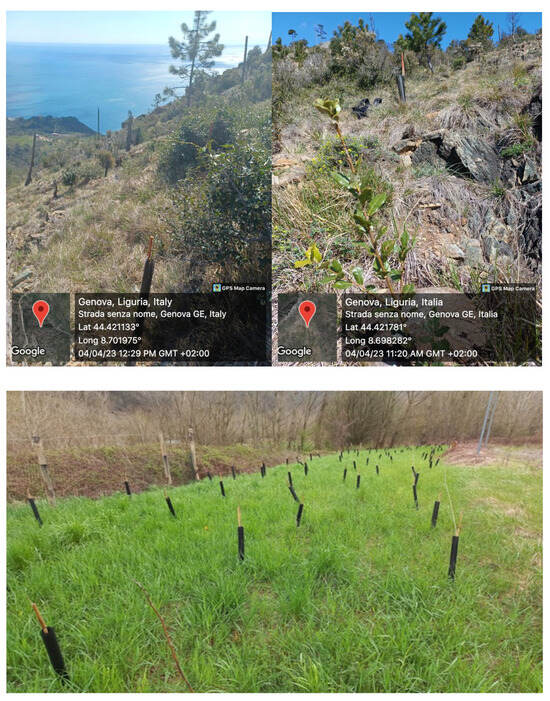 - Pnrr.Regione.Liguria. Available online: https://pnrr.regione.liguria.it/progetti/altri-soggetti-attuatori/pnnr-forestazione-2-genova-e-levante-genovese-terreni-da-rimboschire-nei-comuni-di-bogliasco-pieve-ligure-genova-della-citt-metropolitana-di-genova-diverse-aree-da-rimboschire-nei-tre-comuni-fogli-e-mappali-da-progetto-terreni-da-rimboschire-nei-52217.html (accessed on 28 February 2025).