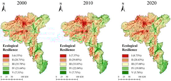 3.2.1. Trends in the Spatial and Temporal Evolution of Landscape Ecological Resilience