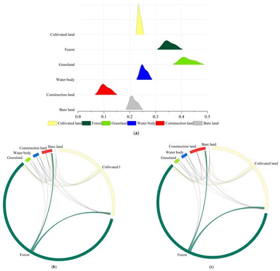 Landscape ecological resilience of different land use (a), transfer of land use 2000–2010 (b) and 2010–2020 (c).