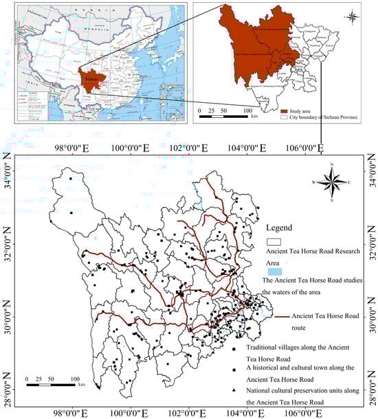 The basic data sources are shown in Table 1. In addition, in order to determine the specific spatial location of the cultural heritage sites along the Ancient Tea Horse Road in Sichuan, the 30 m resolution historical remote sensing image data provided by Google Earth in January 2021 was obtained. The annual precipitation dataset, soil type map of Sichuan Province and water system map of Sichuan Province are from the National Earth System Science Data Center.