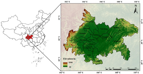 The location of Chengdu–Chongqing Urban Agglomeration and a digital elevation model.