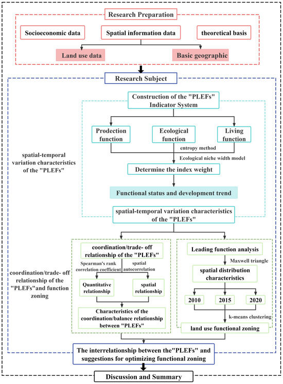 Figure 2), combining quantitative analyses (e.g., ecological niche width modeling, spatial autocorrelation) with qualitative assessments of PLEFs and land use conflicts. By integrating socioeconomic data and spatial geographic information, we systematically mapped the spatial and temporal divergences of PLEFs and identified synergies/trade-offs between them. Based on these studies, we proposed an optimized zoning strategy that suits the characteristics of the region, providing actionable guidance for balancing sustainable development and ecological protection.