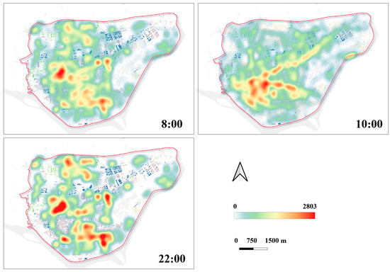 Figure 7. The density distribution of results at 8:00, 10:00, and 22:00.