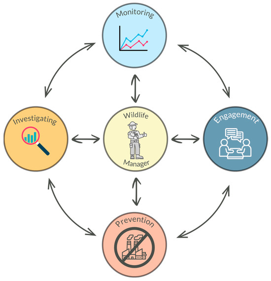 - Stephen, C.; Wilcox, A.; Sine, S.; Provencher, J. A reimagined One Health framework for wildlife conservation. Res. Dir. One Health 2023, 1, e12. [Google Scholar] [CrossRef]