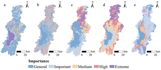 Classification method: The results are classified using the natural breaks method, which divides the region into five levels: general importance, importance, medium importance, high importance, and extreme importance.