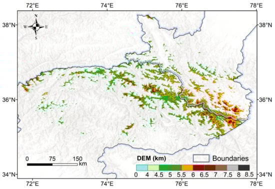 - Zhang, Z.; Xu, J.-L.; Liu, S.-Y.; Guo, W.-Q.; Wei, J.-F.; Feng, T. Glacier changes since the early 1960s, eastern Pamir, China. J. Mt. Sci. 2016, 13, 276–291. [Google Scholar] [CrossRef]