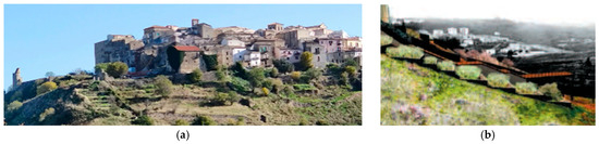 Saracen garden terraces in Tricarico; front view (a) and side view (b) (picture source: (a) photo taken by authors; (b) https://consiglio.basilicata.it/archivio-news/files/docs/48/90/04/DOCUMENT_FILE_489004.pdf, accessed on 10 January 2025).