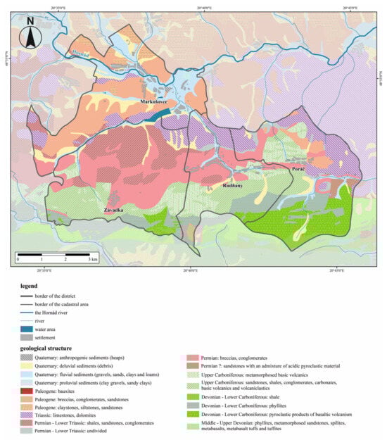 - Mello, P.; Filo, I.; Havrila, M.; Ivanička, J.; Madarás, J.; Németh, Z.; Polák, M.; Pristaš, J.; Vozár, J.; Koša, E.; et al. Geologická Mapa Slovenského Raja, Galmusu a Hornádskej Kotliny 1:50,000; MŽP SR—ŠGÚDŠ: Bratislava, Slovakia, 2000. [Google Scholar]