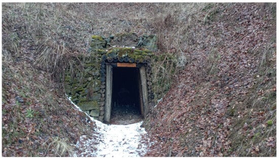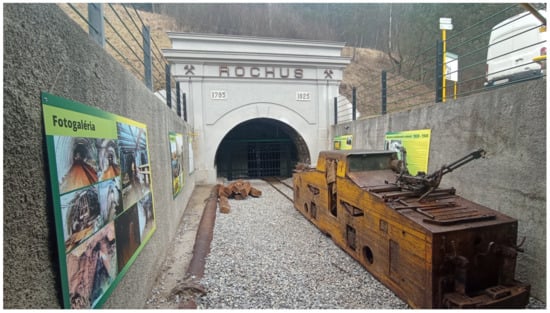 GS1 Rochus adit, Rudňany (Figure 3)—its entrance portal is located at an altitude of 468 m a.s.l. The adit was first dug in 1795 and it was completed in 1925. It is the oldest preserved mining object in the region. It is connected to the Mier, Krížová, Pätoracké and Poráč adits. The adit is 4300 m long and has been protected as a national cultural monument since 1973. Its entrance portal has been reconstructed and equipped with information boards. It is the first stop of the Rudňany Mining Nature Trail (completed in 2017). There are plans to make 1500 m of it accessible by a mining train. In front of the adit is the new mining open-air museum, opened on 4 October 2024.