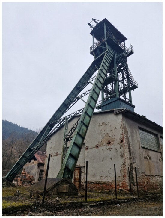 In the detailed analysis, we focused on the location Rudňany-Poráč (Figure 1). A mining map from 1758 is proof of several centuries of mining in the area under study. There were once 12 mining companies working here, five of which formed an association called Funffacher (Pätoraká). The first mercury smelting plant was also built here, operating until 1927. Rudňany experienced its greatest development after 1945 when a new industrial plant for the complex processing of iron ores was built while the former mercury smelting plant created a monopoly in the whole of Czechoslovakia. During almost 700 years of mining, approximately 42 million tons of ore were mined in Rudňany. In the 1970s and 1980s, it was the largest underground ore plant in the former Czechoslovakia [].