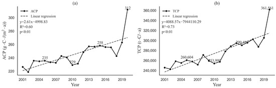 3.1. Spatiotemporal Variations of Cropland Productivity