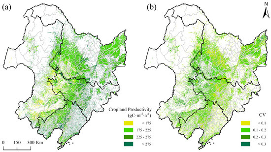 - Han, B.; Jin, X.; Yeting, F.; Chen, H.; Jin, J.; Xu, W.; Ren, J.; Zhou, Y. Trend and Spatial Pattern of Stable Cropland Productivity in China Based on Satellite Observations (2001–2020). Environ. Impact Assess. Rev. 2023, 101, 107136. [Google Scholar] [CrossRef]