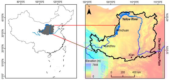 The Loess Plateau (Figure 1) is located in the middle–upper reaches of the Yellow River, spanning 33°43′–41°16′ N and 100°54′–114°33′ E, with a total area of 640,000 km2 and a population of 98 million (2005 data). This region exhibits a typical continental monsoon climate. Over the past century, mean annual temperatures have displayed a spatial gradient, decreasing from 14.3 °C in the southeast to 4.3 °C in the northwest, paralleled by annual precipitation, declining from 700 mm in the southeast to 200 mm in the northwest. As the world’s largest loess deposit, formed during the Quaternary period, it has preserved the most complete loess–paleosol sequences globally, averaging 100 m in thickness [28]. The natural ecosystem is dominated by grassland vegetation, while agricultural development has created a distinct agro-pastoral transitional system. This constitutes a classic ecologically fragile zone, where degraded environments show limited short-term recovery capacity. Its complex topography, loose soil texture, concentrated heavy rainfall events, and intensive human activities have collectively made the Loess Plateau one of the world’s most severe soil erosion hotspots and the primary sediment source for the Yellow River. Approximately 70% of the river’s sediment is ultimately deposited in downstream channels and the delta, directly driving the historical frequency of levee breaches and channel avulsions of the lower Yellow River.
