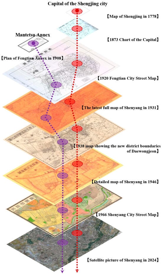 (1) The typicality and complexity of the historical landscape of the Shenyang historic district. Shenyang is the only historical and cultural city in northeastern China with a designation of “the birthplace of a dynasty, two generations of emperors and kings”. The urban space of Shenyang carries the characteristics of successive layers from the Qing dynasty capital city to a modern colonial commercial port to a modern industrial base. In comparison with cities that possess a singular historical deposit, the complexity and typicality of Shenyang’s multicultural superposition and spatial conflict, as well as the preservation dilemma faced by this kind of city with its typicality and complexity, are worthy of further exploration and research.