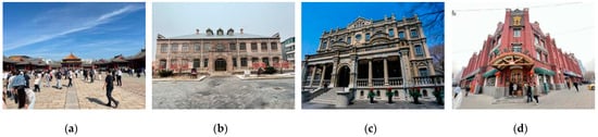 (1) The extent to which the various types of buildings are represented. The ten typical historic districts selected cover the four core functional categories of “administrative function-led”, “residential function-led”, “cultural function-led”, and “industrial heritage-led”. The four core functional categories ensure that the research samples can systematically reflect the typical characteristics of Shenyang’s diversified historical spatial spectrum and avoid the duplication of types, leading to the generalization of research conclusions.
