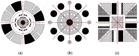 The spatial form of the Shenyang historic district has undergone a complex evolutionary process, accumulating layers over the course of hundreds of years of urban change. This evolution has resulted in a distinctive layering law in its morphological structure. It exhibits a transition from the early traditional Chinese architectural style to a fusion of Chinese and Western architectural styles and, subsequently, to a modern industrial heritage. Consequently, the Shenyang historic district exemplifies the spatial structure, architectural style, and urban functions of multiple historical periods that have been superimposed. The morphology of the district reveals the superimposition, intermingling, and collaborative construction of the architectural styles, street layouts, and spatial structures of different historical periods, collectively contributing to the district’s distinctive morphology. This approach not only reflects the architectural features and street patterns of a specific period but also demonstrates the continuity, transformation, and reconstruction of multiple morphological elements across different historical stages. Employing systematic categorization and generalization techniques, the spatial layering patterns of Shenyang’s historical districts can be succinctly classified into seven distinct types: radial, circular, triangular, polygonal, linear, grid, and patch (Table 2).