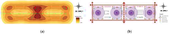 Analysis of layering patterns in the Santaizi Workers’ Village historic district: (a) kernel density analysis; (b) graphical analysis. (Source: drawing by W.Y.).