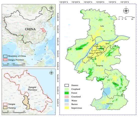Nanjing administers 11 districts: Xuanwu, Qinhuai, Jianye, Gulou, Pukou, Qixia, Yuhuatai, Jiangning, Liuhe, Lishui, and Gaochun. Based on geographic distribution and urban development, this study classifies all districts except Liuhe, Lishui, and Gaochun as the main urban area of Nanjing.
