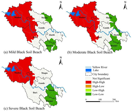 LISA clustering results of different degrees of black soil beach.