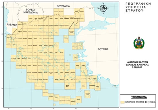 The distribution of 1:100,000 scale Hatt maps in Greece (source: Hellenic Geographic Military Service).