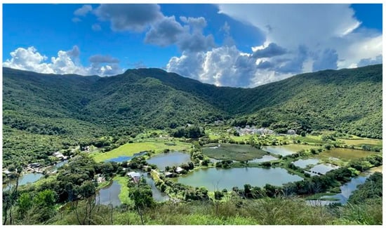 At the beginning of 2010, the Hong Kong Sustainable Agriculture Concern Association (HKSACA) and its members (i.e., organic farmers) in Nam Chung launched the ‘Nam Chung Land Keeping Movement’, recruiting more than a hundred enthusiastic people to form ‘land keepers’. They jointly raised funds to purchase more than 4000 square feet of land from villagers and leased about 800,000 square feet (7.43 ha) of fishpond land for a period of three years to protect the ecological environment of Nam Chung and promote sustainable agricultural production (see Figure 4). This is de facto a community land trust. The goal is to achieve the harmonious coexistence of people and the ecological environment. Fishponds occupy 90% of the 800,000-square-foot land. Except for the lotus and rice that grow in the water, the rest are planted surrounding the fishponds, such as radishes, pumpkins, bananas, ginger, tomatoes, dragon fruits, etc. It is to minimize intervention in the natural environment and coexist with different species.
