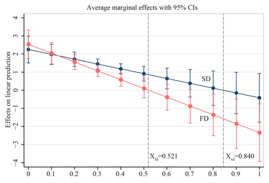 This paper reveals the nonlinear impact of scale and functional diversity within innovation cooperation networks on local innovation. The formation of innovation is built upon a moderately complex level of knowledge combinations. Excessively complex knowledge sources can lead to overload. Whether in the scale or functional dimension, an excessively high level of network diversity increases the complexity of knowledge sources, making knowledge integration, absorption, and maintenance difficult. This is highly detrimental to local innovation. The marginal effect of network diversity on the innovation capacity of towns and villages first increases and then decreases, supporting hypothesis H1a, with an inverted U-shaped impact. This result is consistent with the findings of Wang et al.’s study [
