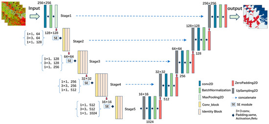 Considering the irregular shape of cropland in mountainous areas, this study introduced the Squeeze-and-Excitation (SE) module into the ResUNet network architecture to construct a deep learning network for the remote sensing extraction of mountainous cropland—namely, SE-ResUNet.