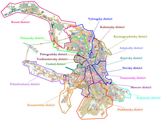 Map of zoning of the territory of Saint Petersburg by administrative districts [39].