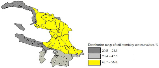 Thematic map of soil humidity content, %.