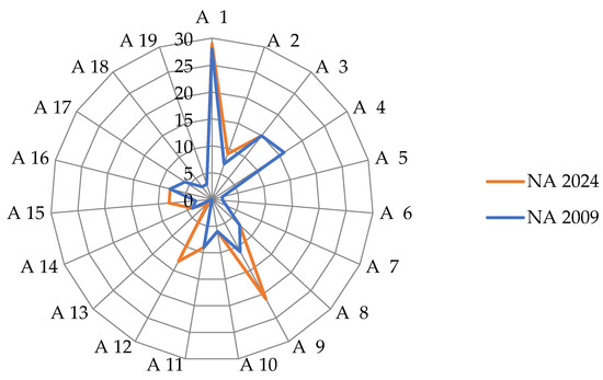 Notably, by 2024, all urban zones had access to at least one metro station, illustrating the network’s comprehensive spatial coverage across the city. Furthermore, the time-based accessibility analysis consistently ranked Zone A1 as the most accessible in both 2009 and 2024. This outcome suggests that recent expansions have effectively targeted previously underserved areas, a finding that aligns closely with the conclusions drawn from the topological analysis.