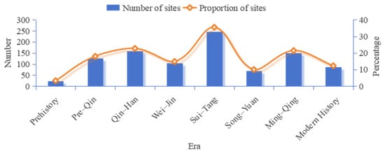 As the product of the interaction between regional culture and the natural environment, CHS are the material carriers of human historical activities and spatial representation of cultural memories. They not only carry information about human production and daily life in specific historical periods but also serve as important means for understanding the dynamic evolution of the human–environment relationship [1]. UNESCO stresses that protecting cultural sites is not only the key to preserving human memory and identity, but also an important means to promote sustainable development, enhance cultural diversity, and promote social inclusion [2]. Through the CHS systematic analysis from historical periods, we can uncover the methods of production and daily life of humans in different historical stages, the evolution of social structures, and the dynamic changes in the human–environment relationship. This provides historical experience and cultural insights for the sustainable development of contemporary society.