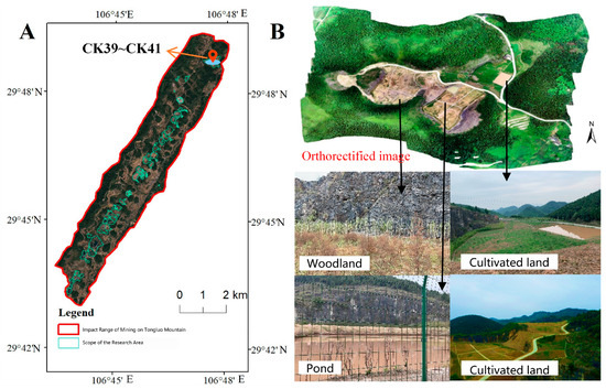 Abandoned mine pit 31 on Tongluo Mountain: (A) geographical location; (B) orthorectified image.