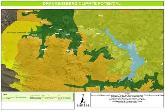Map showing climate potential of Northern Drakensberg areas (Source: own map).