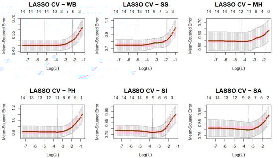(3) Stepwise Regression. The stepwise regression analysis was performed in R with packages such as dplyr, MASS, and stats. Data pretreatment included dummy variable encoding for human–place interaction typologies, utilizing the “social activities-oriented group” as the reference category to reduce multicollinearity, and eliminating incomplete cases through na.omit(). A multiple linear regression approach was utilized to analyze the impact of predictors (natural capital, human capital, social capital, constructed capital, and interaction types) on well-being (overall well-being and its sub-dimensions). Model optimization employed stepwise selection guided by the Akaike Information Criterion (AIC), with final coefficients assessed for statistical significance to identify principal factors influencing variations in well-being. To enhance the methodological robustness of variable selection, LASSO regression was further employed as a validation procedure. LASSO is a regularized regression technique that performs both variable selection and shrinkage, effectively addressing multicollinearity and overfitting concerns. The glmnet package in R was used to perform LASSO regression with 10-fold cross-validation. All predictor variables, including dummy-coded categorical factors, were standardized prior to modeling.