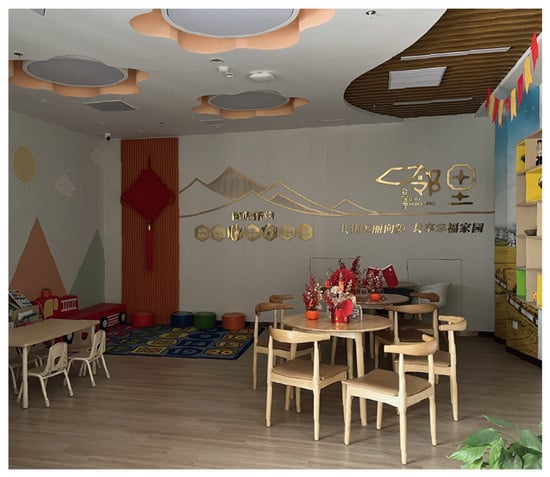- Optimization of Residual Space Utilization. Survey findings and evaluation results indicate that residual spaces within the neighborhood center are insufficiently designed, leading to underutilization or inefficient use. In rural public cultural spaces, however, such residual areas hold significant potential as sites for participatory design, everyday appropriation, and localized maintenance. Drawing on the theoretical perspectives of temporary urbanism and everyday urbanism, Zhou et al. [37] underscore the significance of flexible, small-scale, and user-oriented interventions in reactivating residual spaces. They argue that transforming “temporary” spatial interventions into “everyday” practices allows for the integration of adaptive renewal strategies as part of daily life, thereby supporting the construction of a sustainable spatial order. Residual spaces can be strategically repurposed into multifunctional micro-sites such as cultural display corners that showcase rural heritage, social nodes that foster community engagement, or creative platforms that support spontaneous expression. For example, in the case of the median gardens in the Wallingford and Capitol Hill neighborhoods of Seattle, USA, residents proactively cultivate and plant garden strips. These greening efforts enhance social interaction, strengthen residents’ sense of belonging, enable personal expression, and reinforce neighborhood cohesion [38]. In the Cat’s Sky City concept bookstore in Xuzhou, Jiangsu, China, a residual space was creatively adapted into a Mail to Future corner—a participatory micro-space that invites users to express future aspirations (see Figure 9). Thus, effectively utilizing residual spaces requires transforming them into emotionally engaging and socially interactive environments that contribute to the construction of local identity and collective participation. In addition, according to the study by Eissa et al. [39], the design and implementation of interventions in residual spaces should be informed by a comprehensive understanding of the interrelationships among their physical, social, and mental dimensions, as well as the dynamic evolution of these dimensions. Such an approach enables planners and designers to emulate the adaptive qualities of spaces organically shaped through informal appropriation processes. This approach can also be integrated with the principles of co-design in design studies, which emphasize the sharing of knowledge about both the design process and content among actors from diverse disciplinary backgrounds [40].