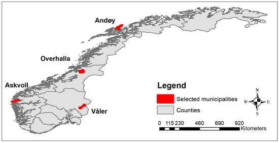 Locations of the four Norwegian municipalities included in the study. Data source: Norway Digital.