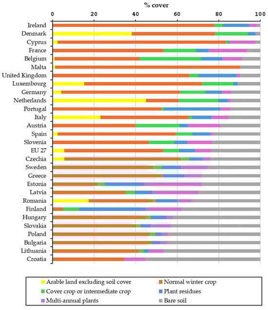 Soil cover (%) in the 27 EU countries in 2016 [].