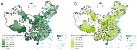 4.1. Spatial and Temporal Variations in the Proportion of Public Welfare Land