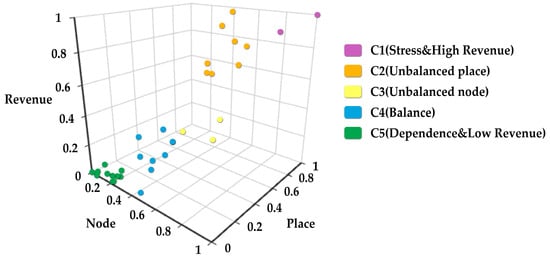 - We developed a quantitative analysis framework for urban renewal guided by rail TOD at the methodological level. Based on multi-source data, the node value, place value, and revenue value of 32 Shenyang Metro Line 1 stations were quantified. The K-means clustering method was applied to divide the stations into five categories: pressure and high revenue, unbalanced place, unbalanced node, balanced, and dependence and low revenue. The different types of stations exhibited significant spatial differentiation characteristics, providing a scientific basis for the development of differentiated renewal strategies.