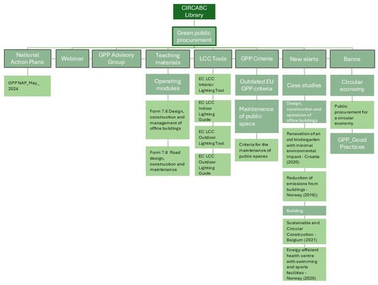 The EC has established an open-source collaborative online platform named CIRCABC, which stands for “Communication and Information Resource Centre for Administrations, Businesses and Citizens” [28]. In the context of green procurement, in the CIRCABC library it is possible to identify several sections in which case studies, guidelines and good practices between administrations, businesses and citizens are published (Figure 3).