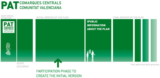 This study focuses on analyzing a set of public participation activities designed and developed with stakeholders involved in the drafting of the three comprehensive PATs under study: the PAT for the Alicante–Elche functional area, the PAT for Vega Baja del Segura County, and the PAT for the Central Valencian Counties. They were all developed in accordance with the legal framework in force in the Valencian Autonomous Region. The objective of the comprehensive plans was to harmoniously structure the three main components of the territorial system: green infrastructure, settlement system, and transportation infrastructure system. Their drafting and eventual approval represented a major challenge for the planning teams, of which the authors of this paper were part, given that, at that time, no comprehensive PAT had been approved in the Valencian Autonomous Region (only sectoral PATs had been approved).