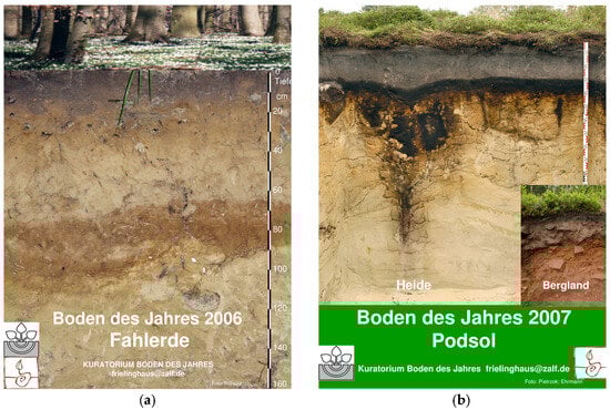 - Deutsche Bodenkundliche Gesellschaft (DBG). Boden des Jahres. Available online: www.dbges.de/de/boden-des-jahres (accessed on 28 May 2025).