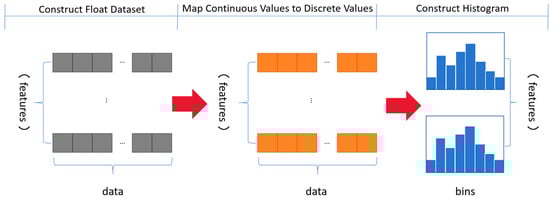 To further improve training speed and reduce memory consumption, LightGBM introduces a histogram-based algorithm to construct decision trees (Figure 3). Instead of evaluating every possible split point, LightGBM first buckets continuous feature values into discrete bins (i.e., histograms). Then it finds the optimal split based on these bins, significantly reducing the number of comparisons needed during training.