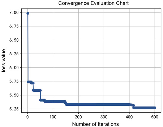 According to the convergence evaluation plot of the active population prediction model, the model’s loss value showed a significant decrease during the initial phase of training (Figure 7). In particular, within the first 50 iterations, the loss dropped sharply from a high value near 7.0 to approximately 5.75. This indicates that the optimization algorithm quickly adjusted the hyperparameters in the early training stage and substantially reduced the prediction error. As the number of iterations increased, the rate of loss reduction gradually slowed, and the curve began to flatten. After around 250 iterations, the loss value stabilized at approximately 5.2, suggesting that further training did not lead to noticeable improvement, and the model reached convergence with stable performance.