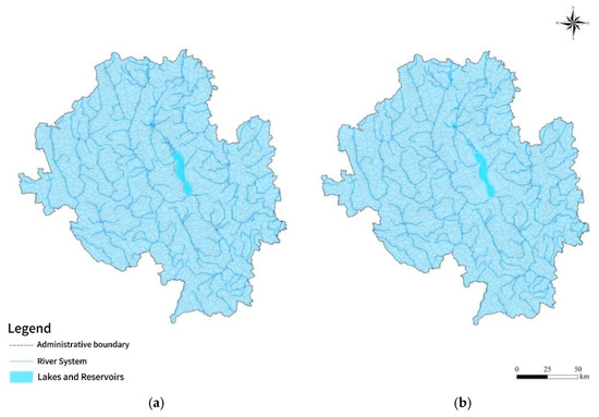 The watershed units delineated through the DEM-based analysis exhibited artificially linear boundaries or parallel contours in the reservoir and lake catchments. To better represent hydrological realism, this study refined the watershed units using 2020 land use data while preserving topographic-driven flow continuity (i.e., discharge from higher to lower elevations) and maintaining hydrological integrity within naturally defined boundaries.