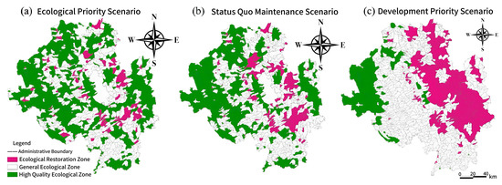 The National Major Project Plan for the Ecosystem Conservation and Restoration of Critical Regions (2021–2035), promulgated in June 2022, explicitly advocates transitioning from single-element remediation to systemic and holistic ecosystem governance [8], emphasizing the imperative to address ecological challenges through integrated landscape management [9]. This strategic shift underscores that scientifically delineating priority ecological restoration zones serves as the foundation for advancing synergistic regional development and safeguarding ecological security. Current methodologies for identifying territorial ecological restoration priorities predominantly rely on administrative jurisdictional units as spatial frameworks. Illustrative examples include the work of Zhang et al. [10], who developed a multi-categorical restoration zoning system in Dayu County, Jiangxi Province, integrating mining rehabilitation, watershed management, farmland consolidation, rural settlement restructuring, and transportation corridor optimization. Similarly, Fu et al. [11] employed an ecological security pattern analysis to demarcate conservation–restoration hotspots in Hezhou City, Guangxi Zhuang Autonomous Region, demonstrating the application of spatial prioritization techniques at subnational scales.