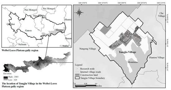 Under the background of global urbanization, traditional villages commonly face conflicts between the transmission of intangible cultural heritage and modern economic activities [1]. This mismatch may trigger a systemic crisis, leading to the disintegration of traditional social structures and the misalignment of spatial functions [2]. Since the reform and opening up, the economic gap between urban and rural areas in China has continued to widen, a trend particularly pronounced in the ecologically fragile and economically underdeveloped Loess Plateau gully areas, which are mainly distributed in provinces such as Shaanxi and Gansu [3]. The Weibei region, as a typical representative of this area, is characterized by its unique landforms of intersecting gullies and vast loess, encompassing typical geomorphological units such as plateaus, gully slopes, gully valleys, and river valleys [4]. After a long-term integration of various social cultures, a unique traditional village system has developed here, with 93 sites currently recognized at the provincial level or above. Based on settlement distribution characteristics, the region can be divided into three types: tableland, gully slope, and valley settlements [5]. Among the villages, the plateau-type village is the main type.